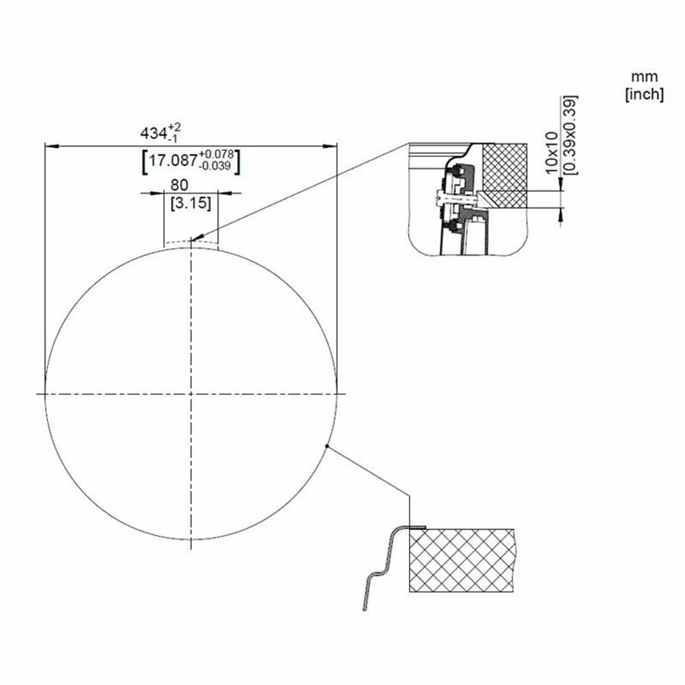 - Ausschnittmaße: Durchmesser 434 mm