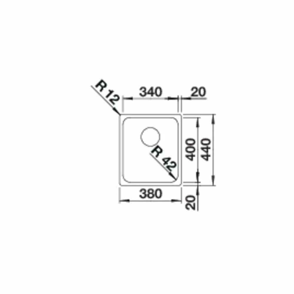 - Ausschnittmaße: 370 x 430 mm, Ecken R=15 mm