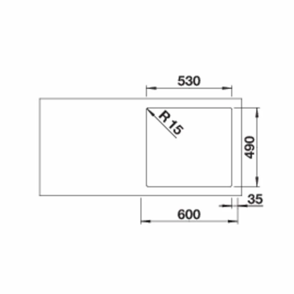 - Ausschnittmaße: 530 x 490 mm, Ecken R=15 mm