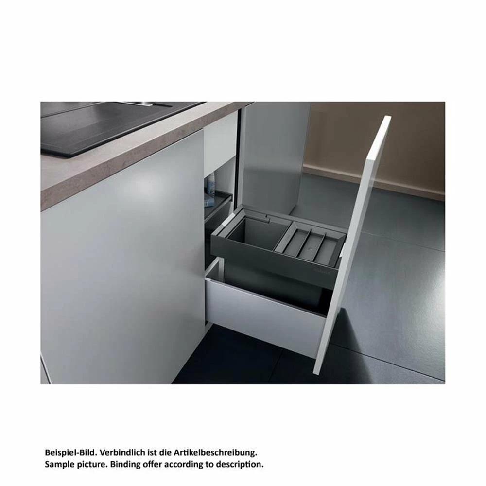 - Beachten Sie bei der Planung die Einbauhöhe des Abfallsystems, Höhe des Schubkastenbodens, Einbautiefe der Spüle mit Ablaufgarnitur und das daraus resultierende Mindestmaß für den Unterschrank