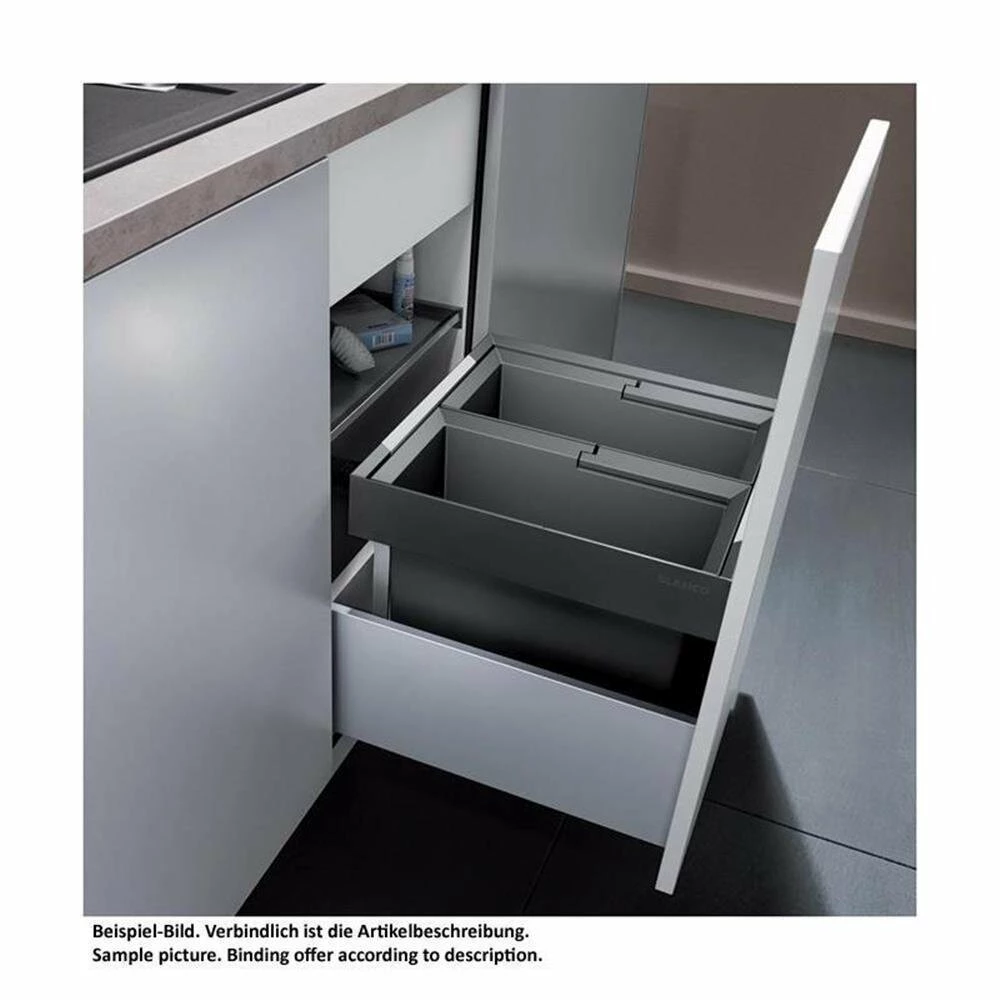 - Beachten Sie bei der Planung die Einbauhöhe des Abfallsystems, Höhe des Schubkastenbodens, Einbautiefe der Spüle mit Ablaufgarnitur und das daraus resultierende Mindestmaß für den Unterschrank