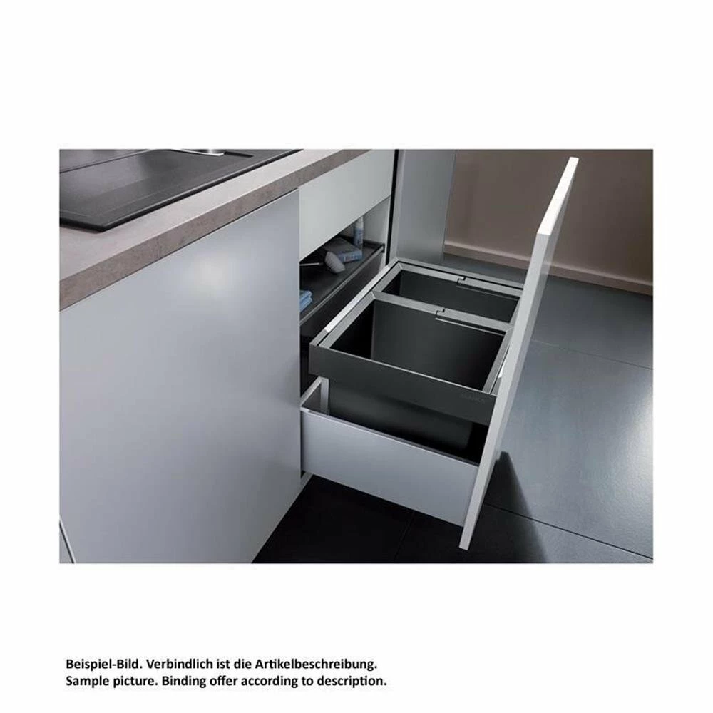 - Beachten Sie bei der Planung die Einbauhöhe des Abfallsystems, Höhe des Schubkastenbodens, Einbautiefe der Spüle mit Ablaufgarnitur und das daraus resultierende Mindestmaß für den Unterschrank