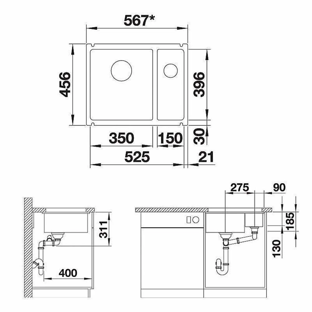 BLANCO SUBLINE 350/150-U Keramik: Die Designlinie für den Unterbau in Keramik PuraPlus