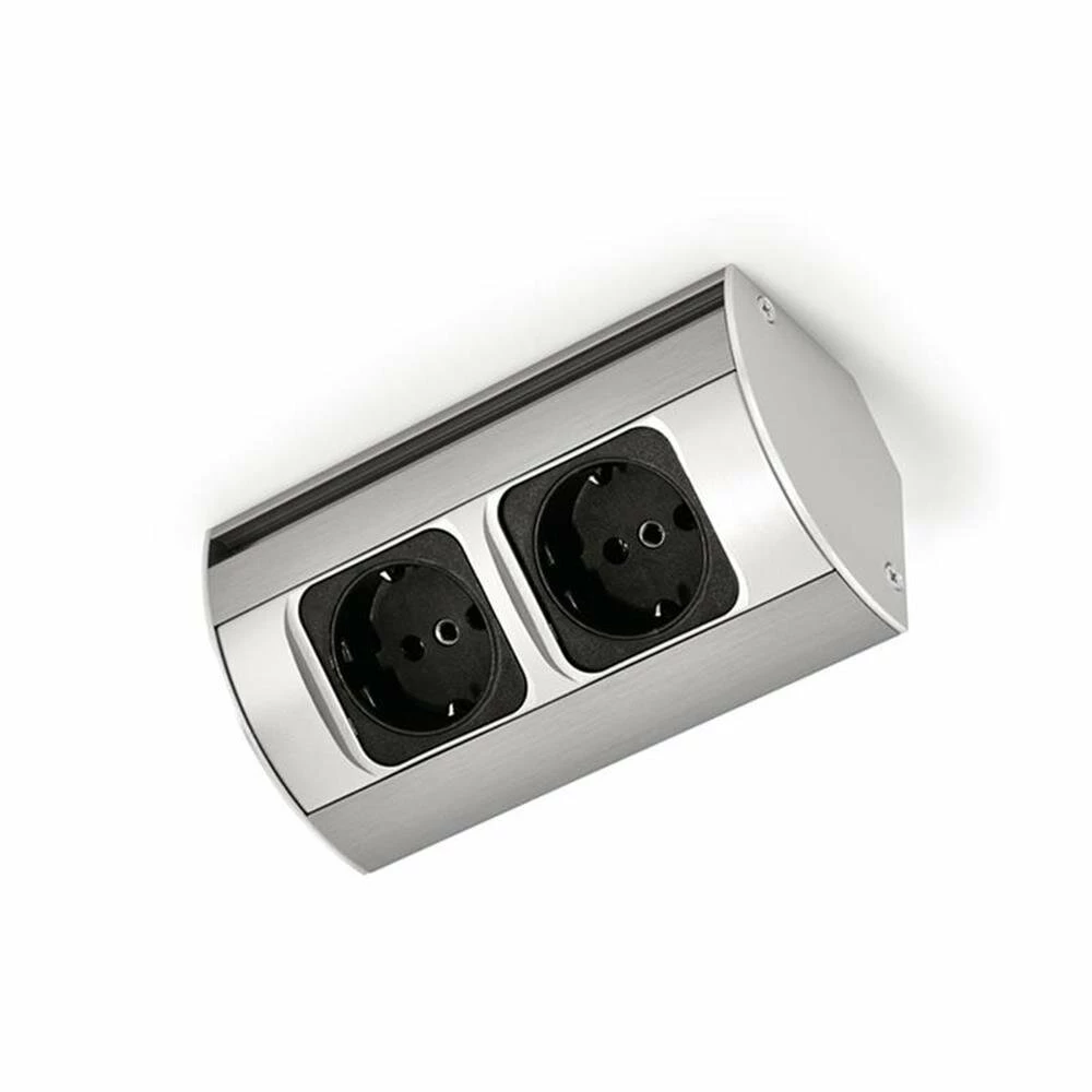 - Edelstahlgehäuse mit schwarzen Steckdoseneinsätzen