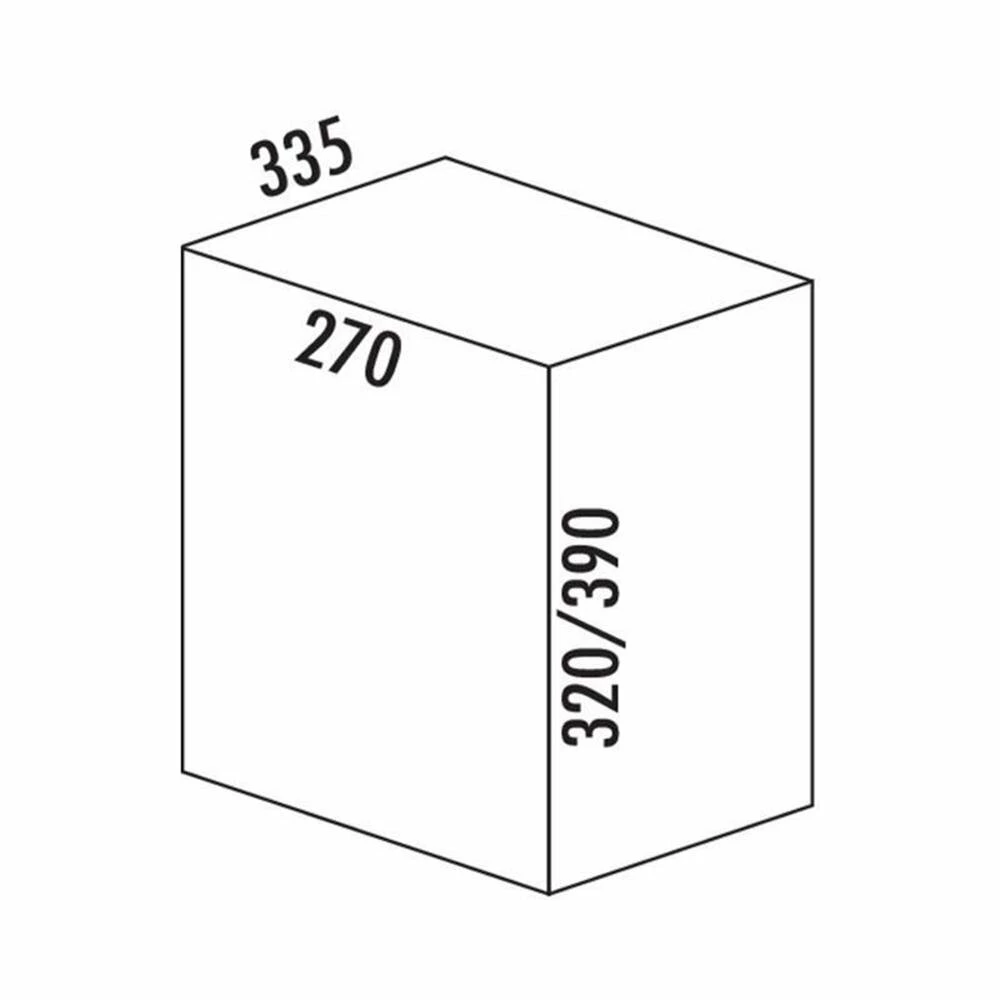 - Einbaumaße: H=320 oder 390 mm, B=335 mm, T=270 mm