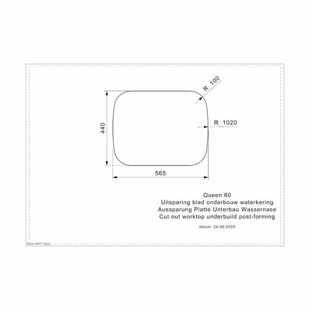 - Ausschnittmaße aufliegender Einbau: 575 x 450 mm (Radien nach Schablone)