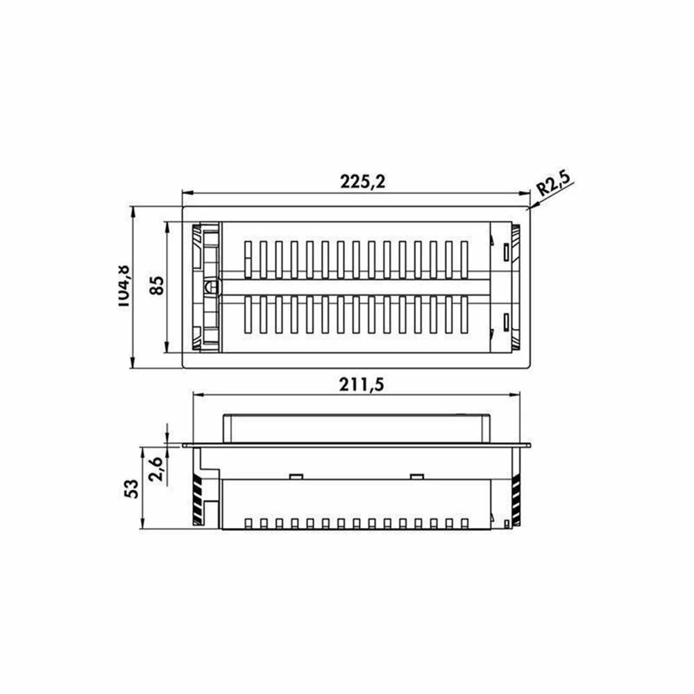 - Ausschnittmaß (für aufliegenden Einbau): ca. 215 x 88 mm