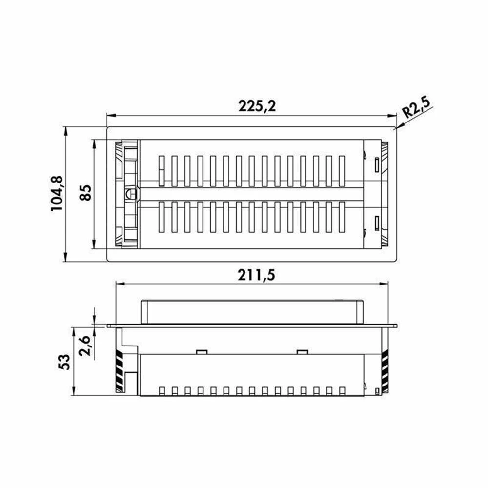 - Ausschnittmaß (für aufliegenden Einbau): ca. 215 x 88 mm