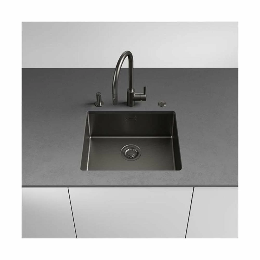 • Hochwertig beschichtetes Edelstahlbecken mit schmalem 12mm Beckenradius