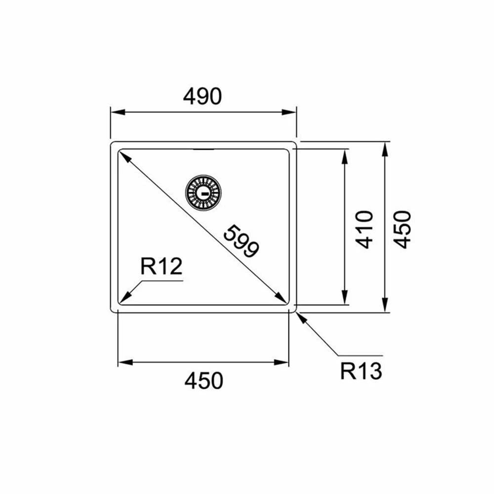 - Spülenmaß: B 490 x T 450 mm