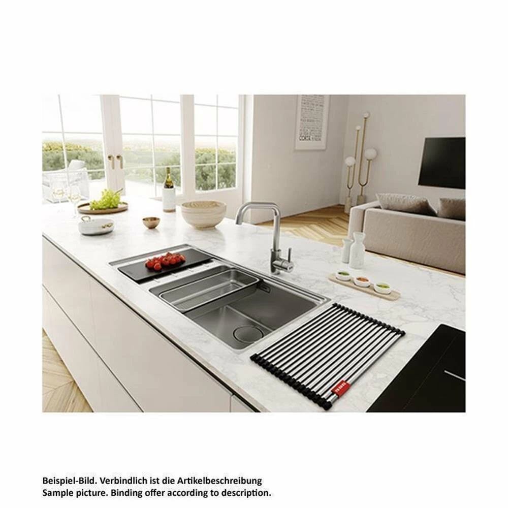 Die Abdeckung ist so gestaltet, dass sie sich in das geradlinige Design moderner Spülen einfügt und deren Formgebung damit unterstützt. - Noch reinigungsfreundlicher: