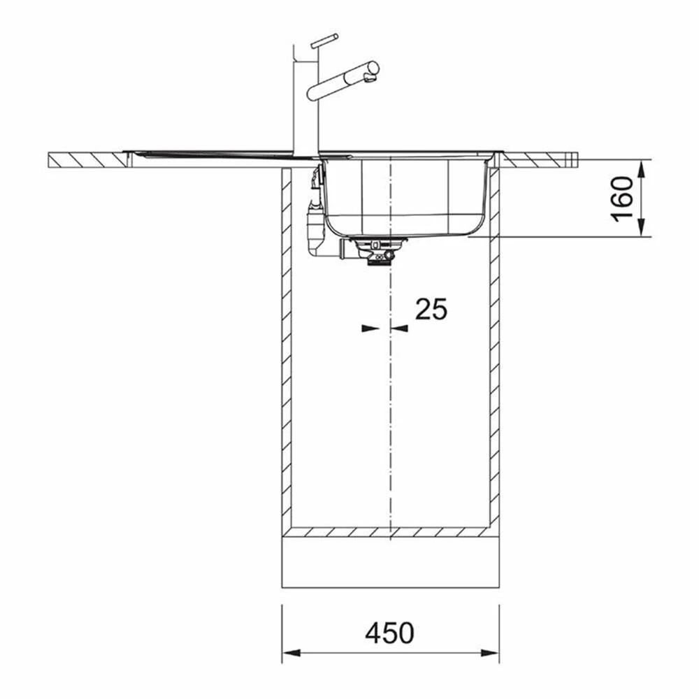 - Materialstärke der Arbeitsplatte mindestens 30 mm