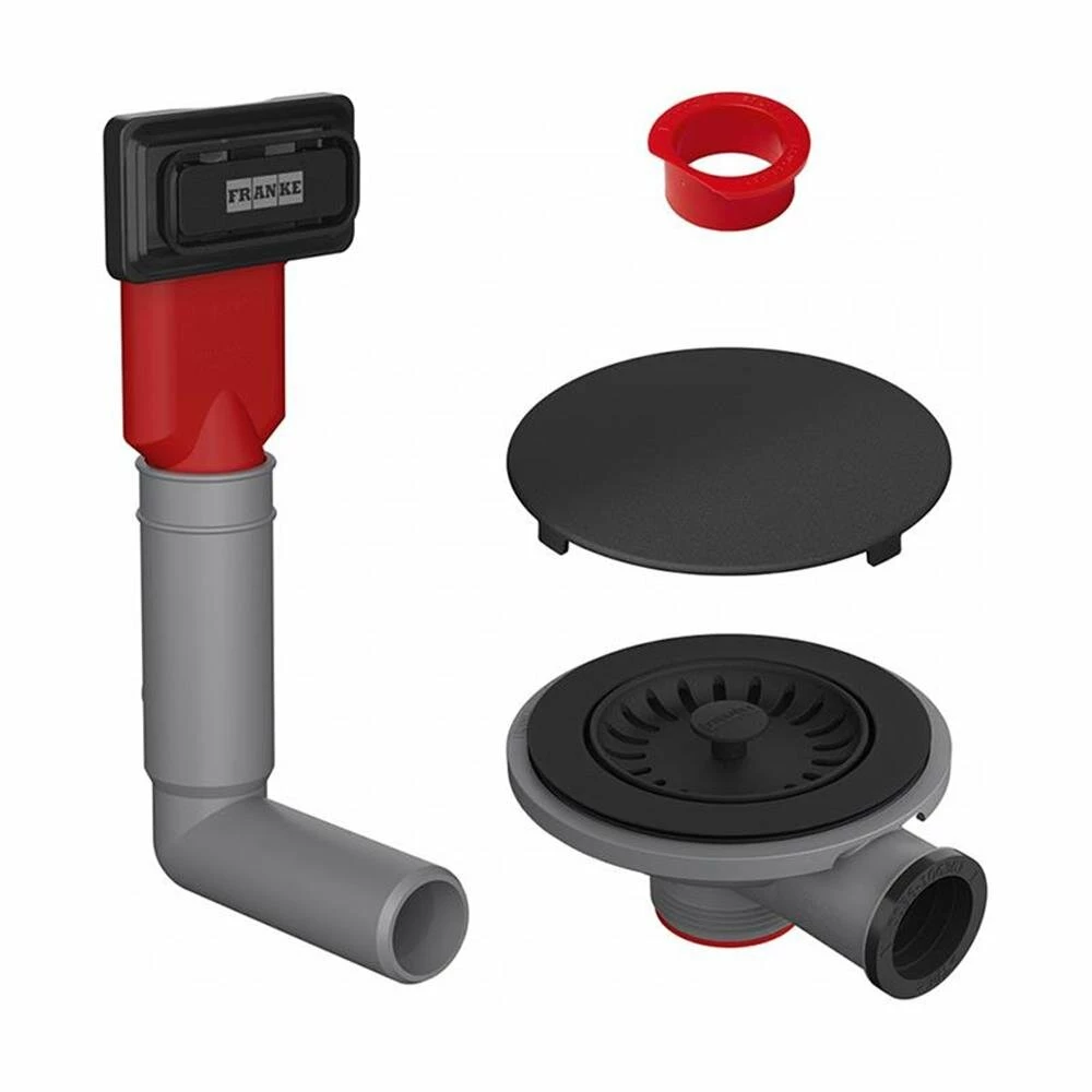 Franke schwarzes Ventilset mit Handbetätigung und eckigem Überlauf