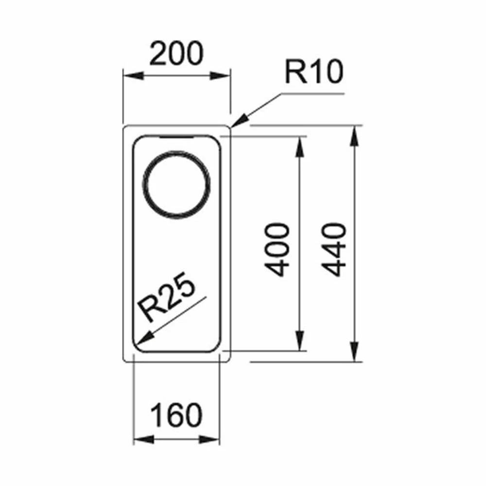 - Ausschnittmaße: B 160 x T 400 mm R25
