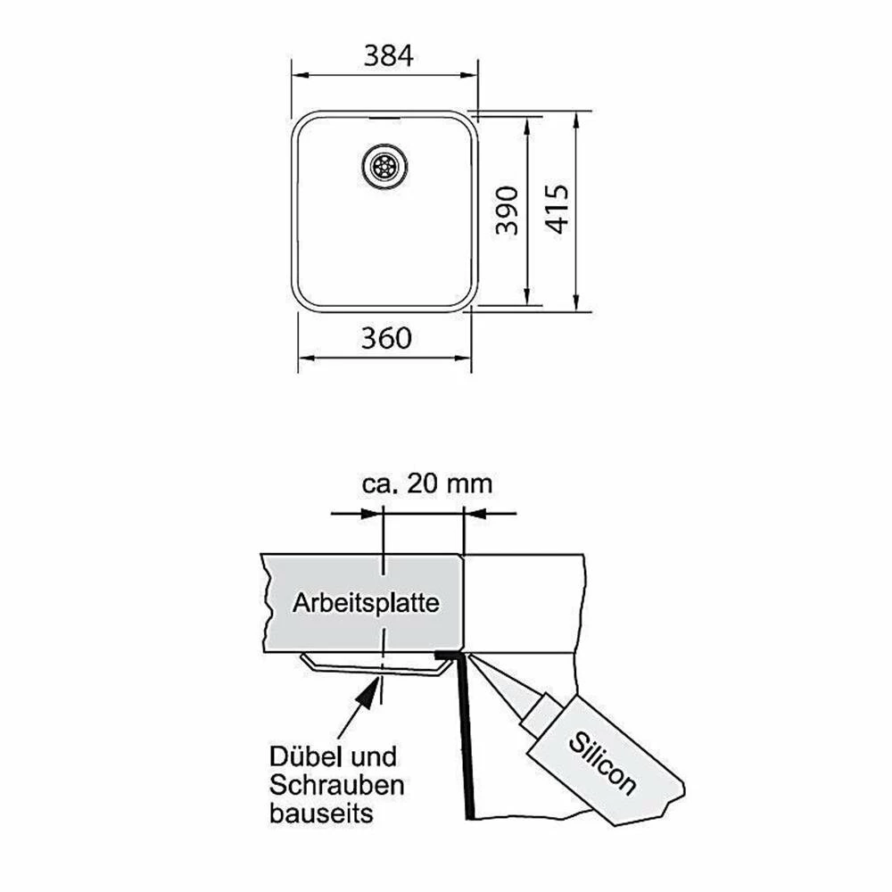 - Spülenmaß: B 384 x T 415 mm