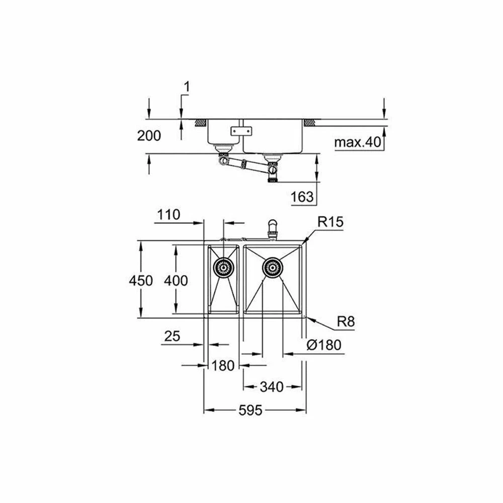 Grohe Unterbaubecken K700U 60-S 59.5/45 1.5, Edelstahl