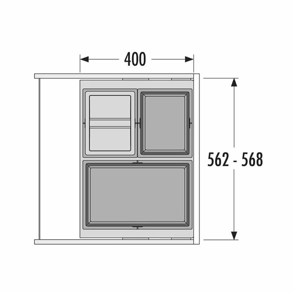 - Abfallvolumen: 54 L (28 L + 2 x 13 L)