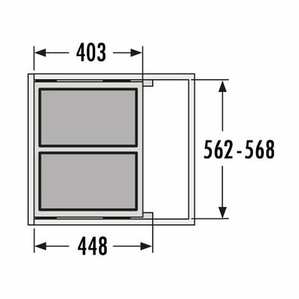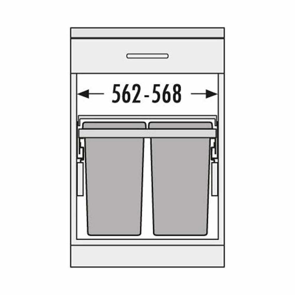 Einbau-Abfallsammler zum Einbau in 60 cm breiten Unterschrank/Spülenschrank hinter Auszugfront (Seitenwandmontage)