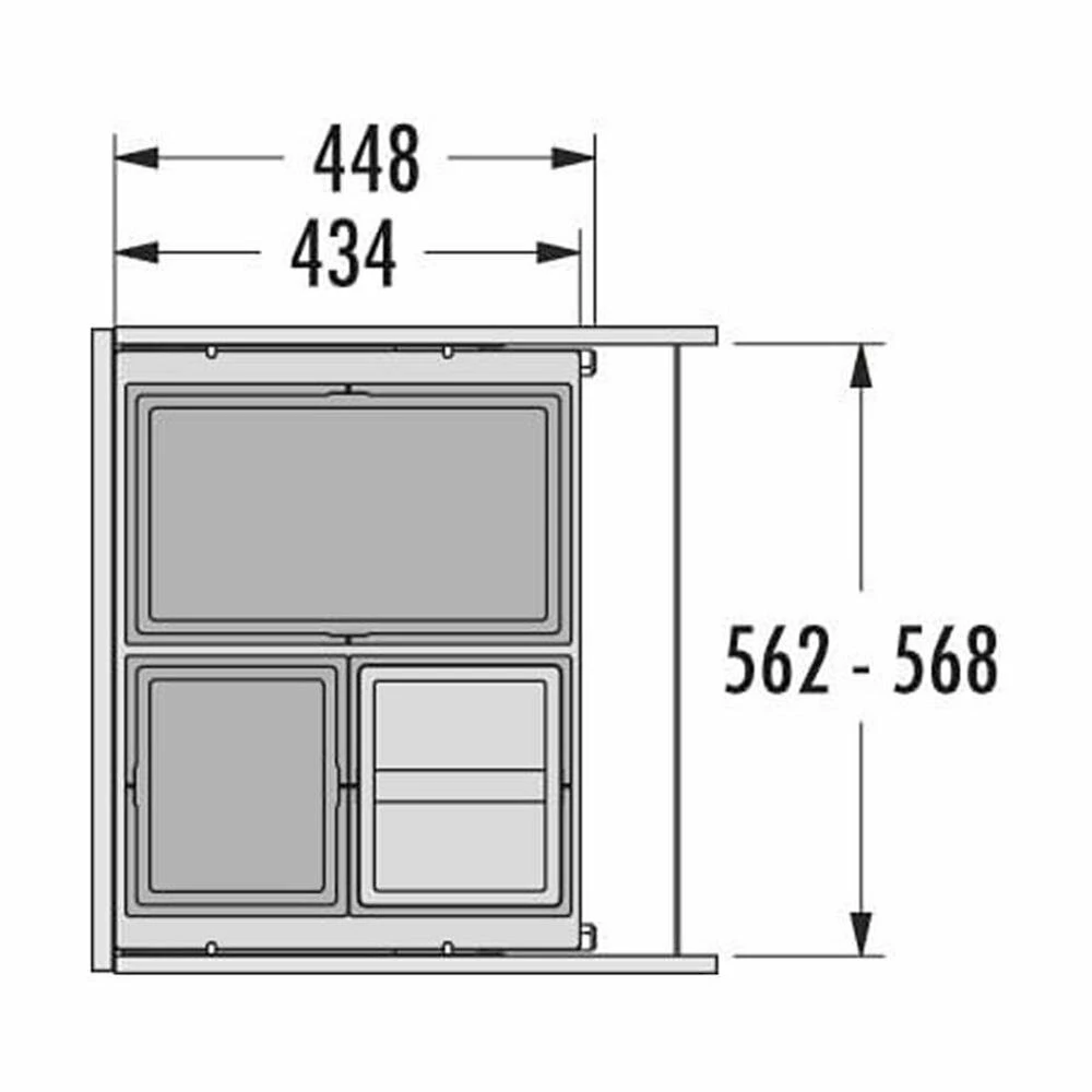 - Abfallvolumen: 54 L (28 L + 2 x 13 L)