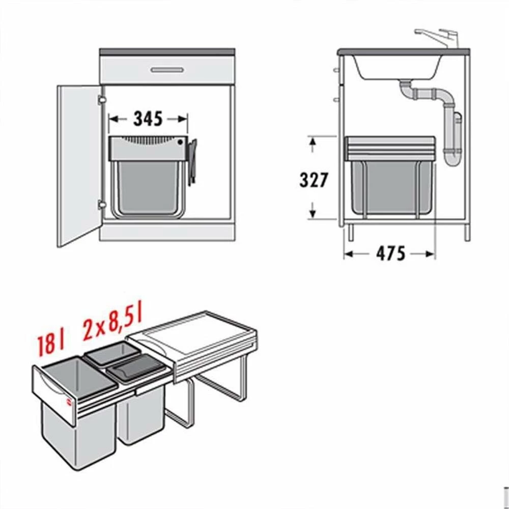 - Dreifach-Mülltrennung: Gesamtinhalt 35 Liter (1 x 18 Liter plus 2 x 8,5 Liter) plus 1 Bio-Zusatzdeckel