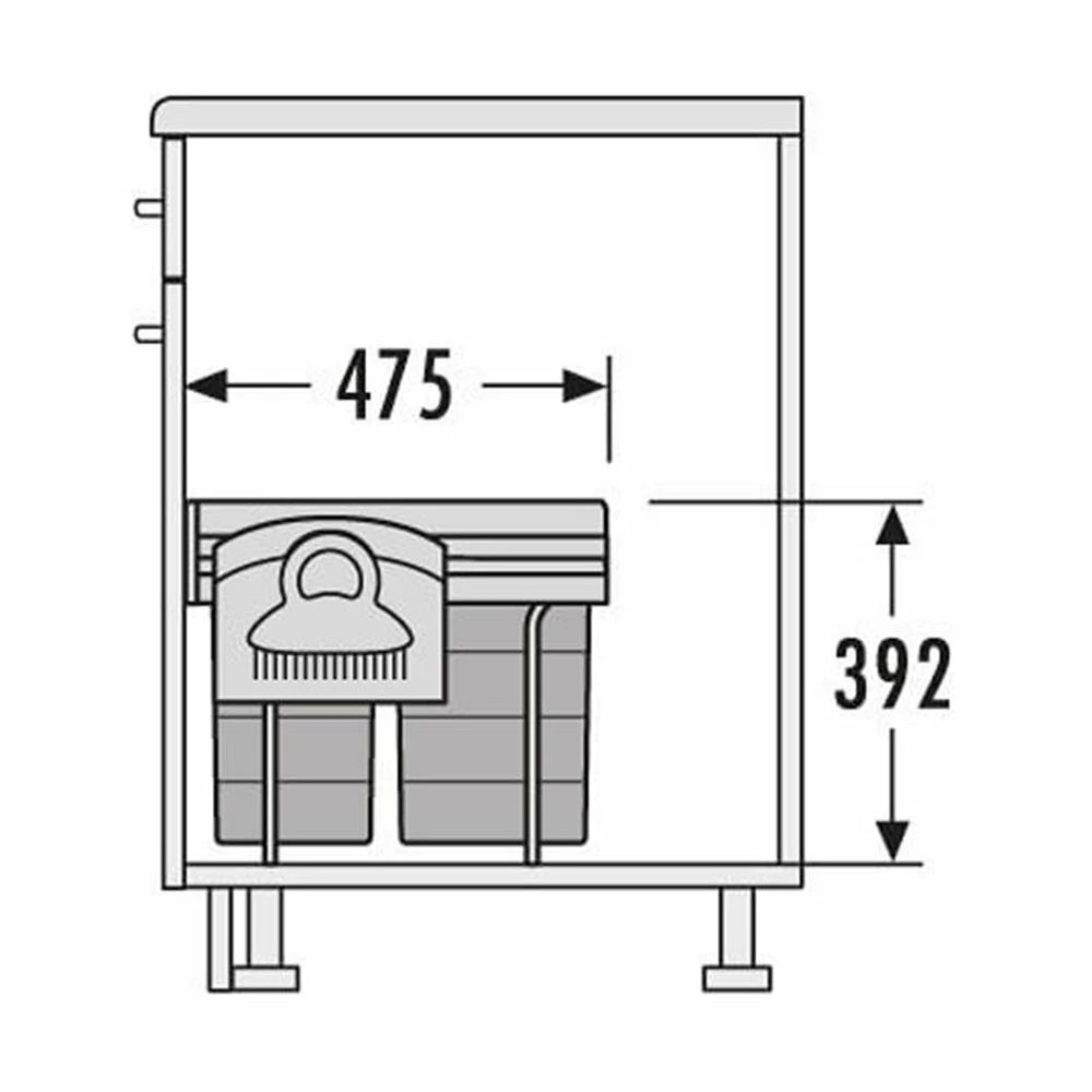 - Einbaumaße: H=392 mm, B=346 mm, T=475 mm