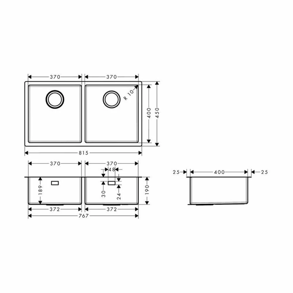 hansgrohe Einbauspüle 370/370 S719-U765 | Edelstahl – hansgrohe Einbauspüle aus Edelstahl: Küchendesign pur, präzise und funktional