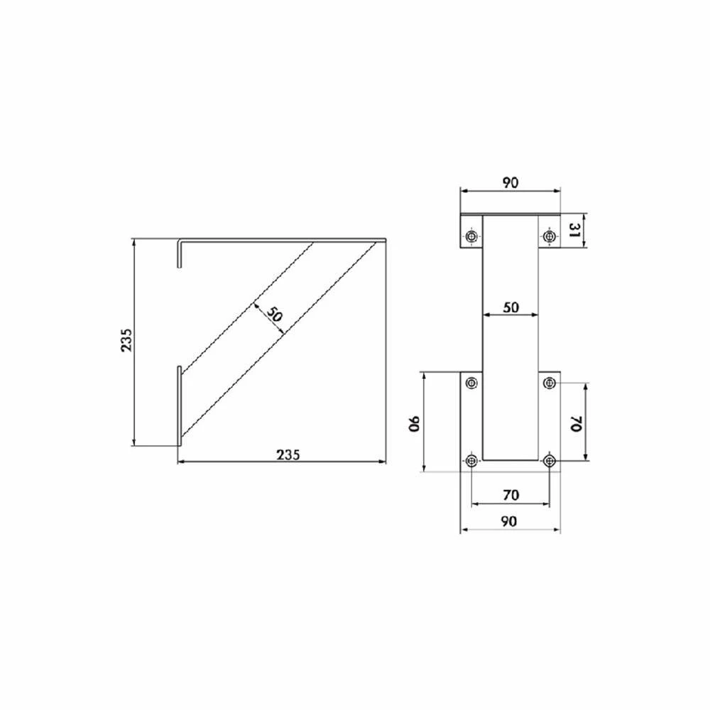 - senkrechte Befestigungsplatte 90 x 90 mm