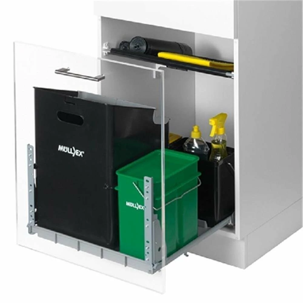 - Abfallbehälter 35 l mit Verschlussdeckel als Ablage für Putzsachen