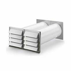 Abluft-Element: eine Edelstahl-Innenabdeckung (Gitter-Auslass) verdeckt sauber den Wanddurchbruch.