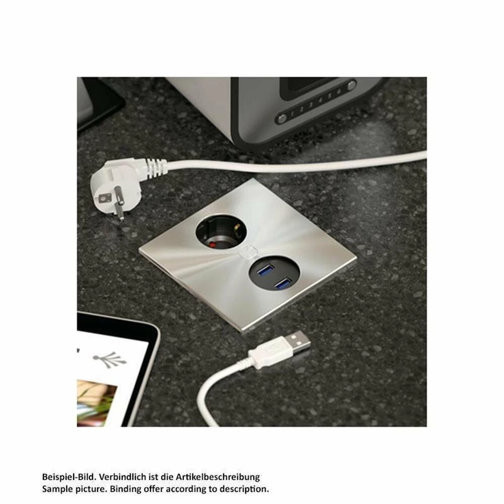 Die Einbausteckdose ist für den Einsatz in nahezu alle bekannten Küchenarbeitsplatten gemacht. Sie öffnet und schließt einfach – per Knopfdruck. Dabei sind sowohl die feststehende Abdeckung als auch das öffnende Innenelement aus Edelstahl.