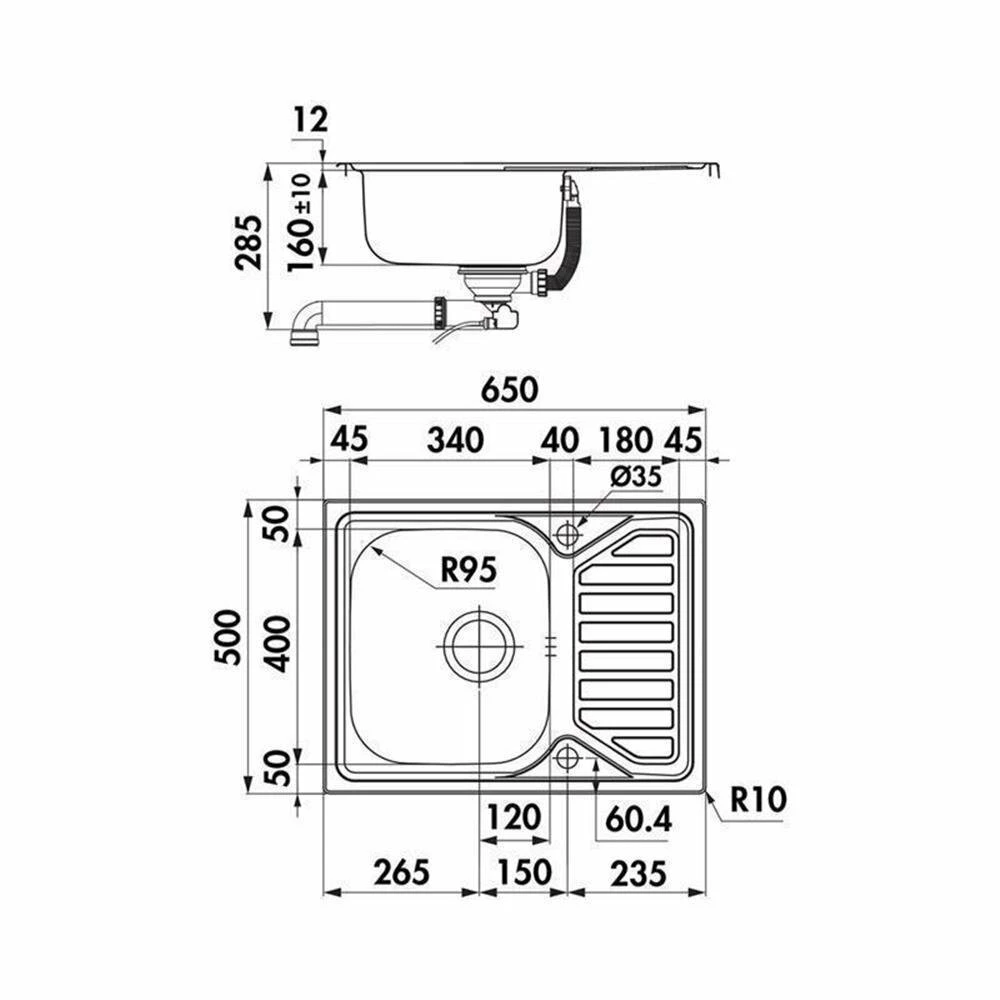 - Spülenmaß: B 650 x T 500 mm