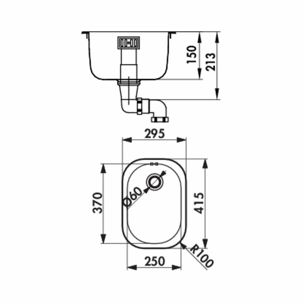 - Beckenmaß: 250 x 370 x 150 mm (B x T x H)