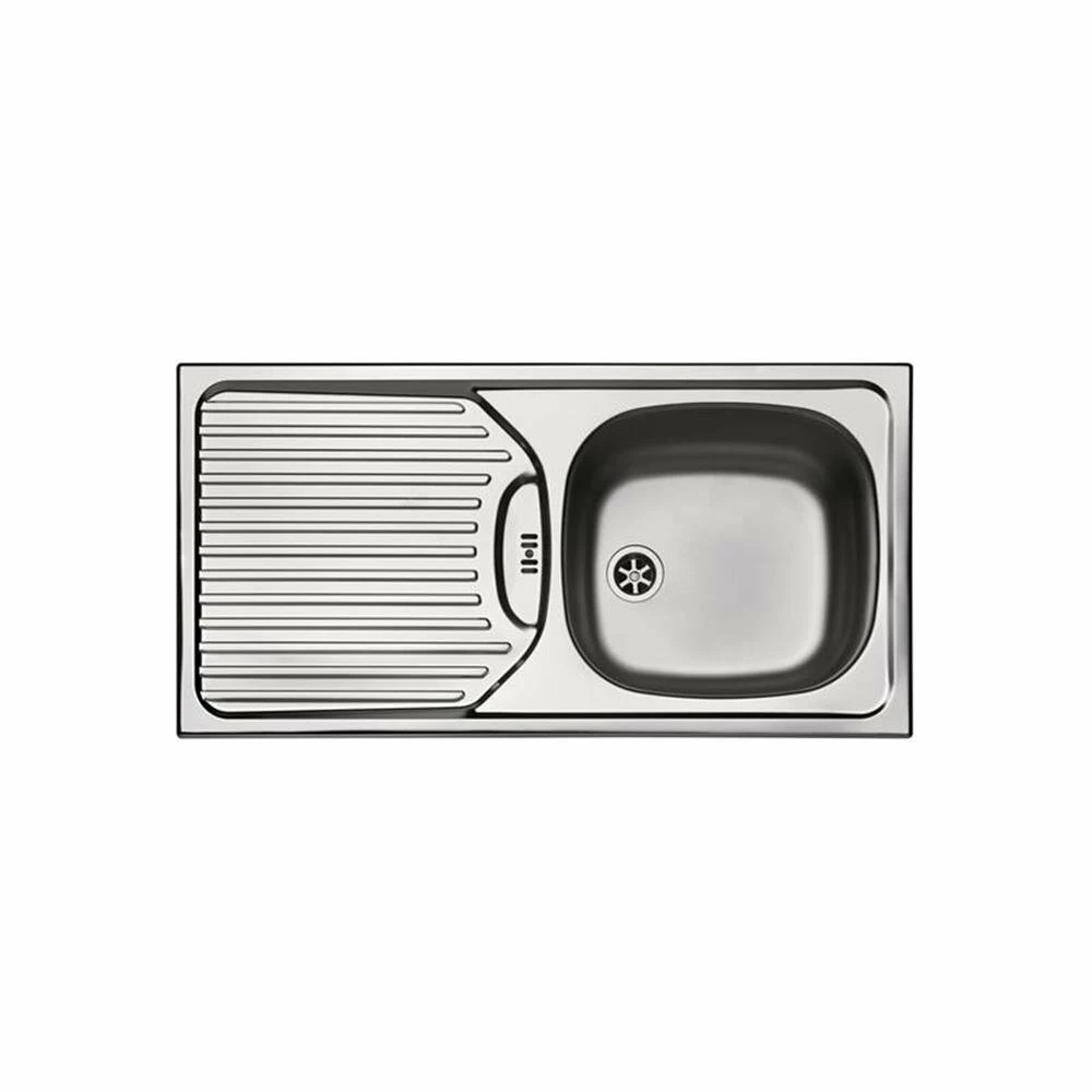 - Edelstahlspüle (glatte Oberfläche) mit Überlauf in der Abtropffläche