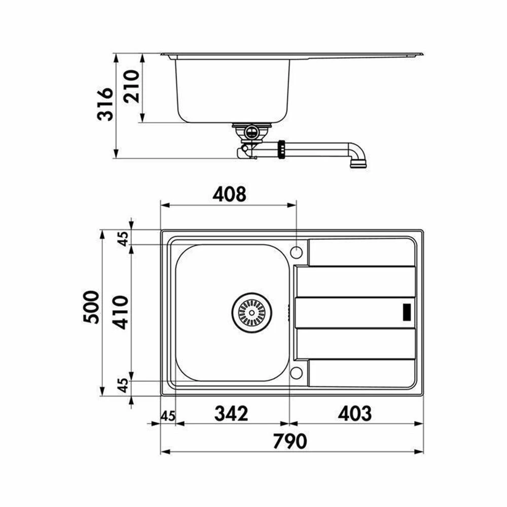 - Spülenmaß: B 790 x T 500 mm