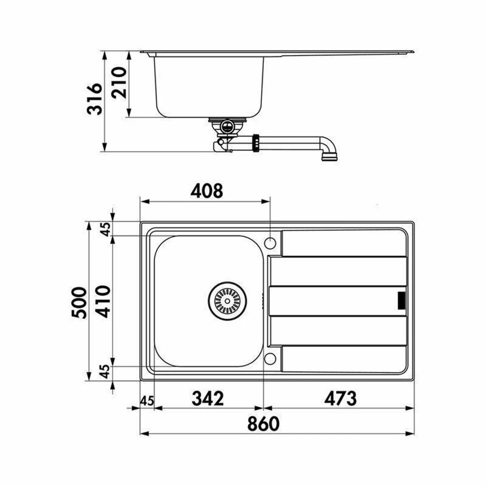 - Ausschnittmaß (Einbauspüle): ca 835 x 475 mm