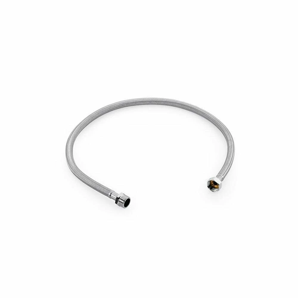 Waschmaschinenschlauch mit Edelstahlgeflecht, eine Seite mit 3/4″ Außengewinde, andere Seite mit Überwurfmutter und 3/4″ Innengewinde.
