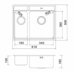 - 1 + 1 Hahnlöcher (für Küchenarmatur und Excenter-Bedienung)