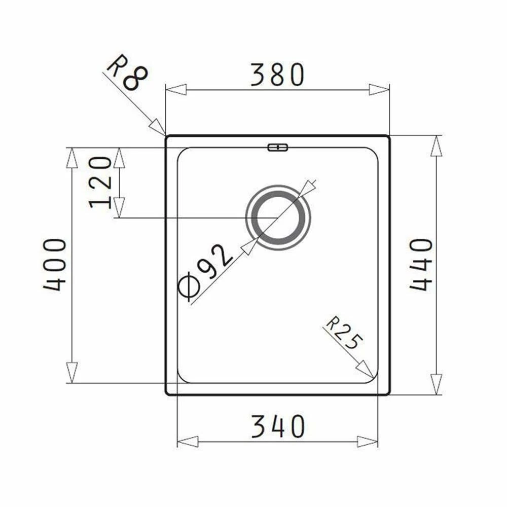 - Spülenmaß: B 380 x T 440 mm