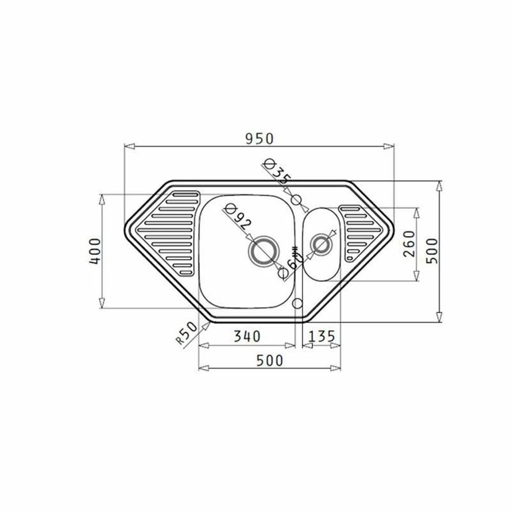 - Beckenabmessung: 340 x 400 x 180 mm / 135 x 260 x 100 mm