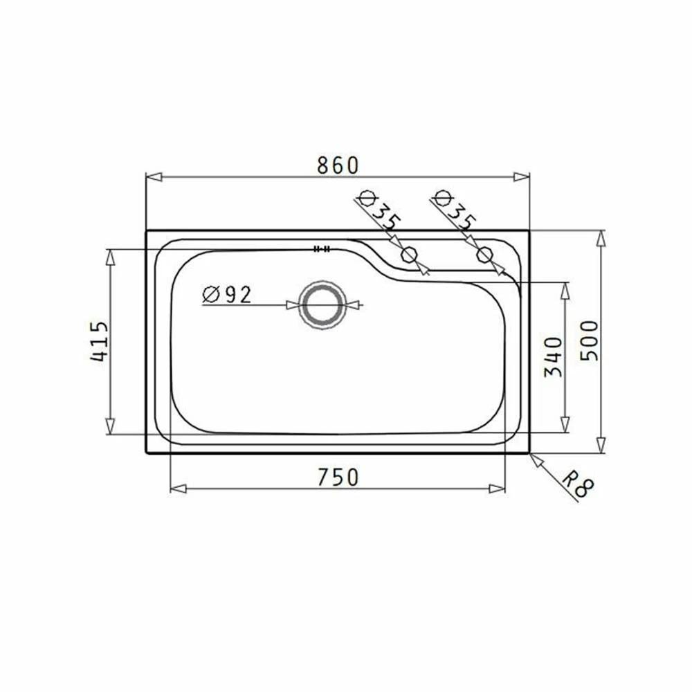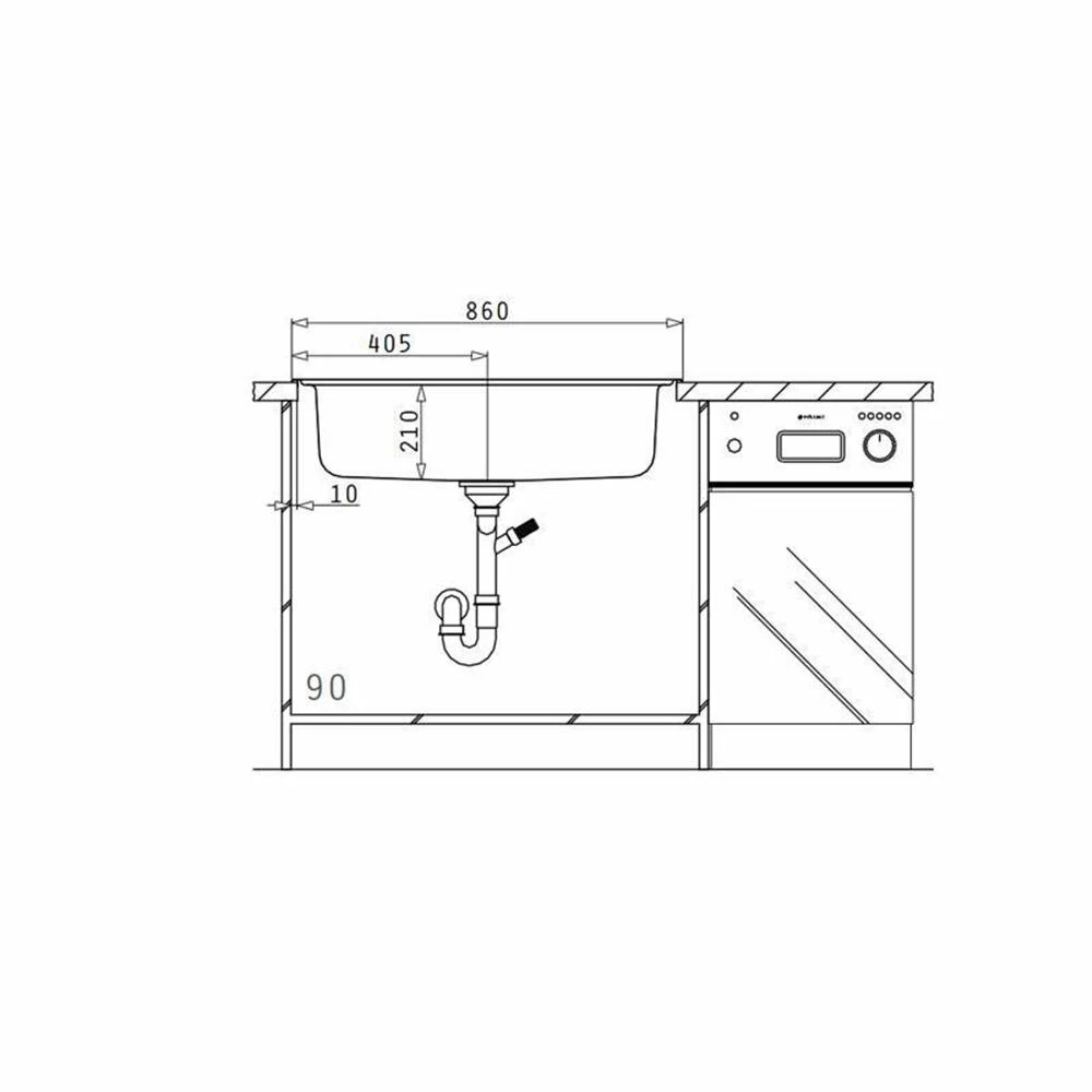 - Spülenmaß: B 860 x T 500 mm