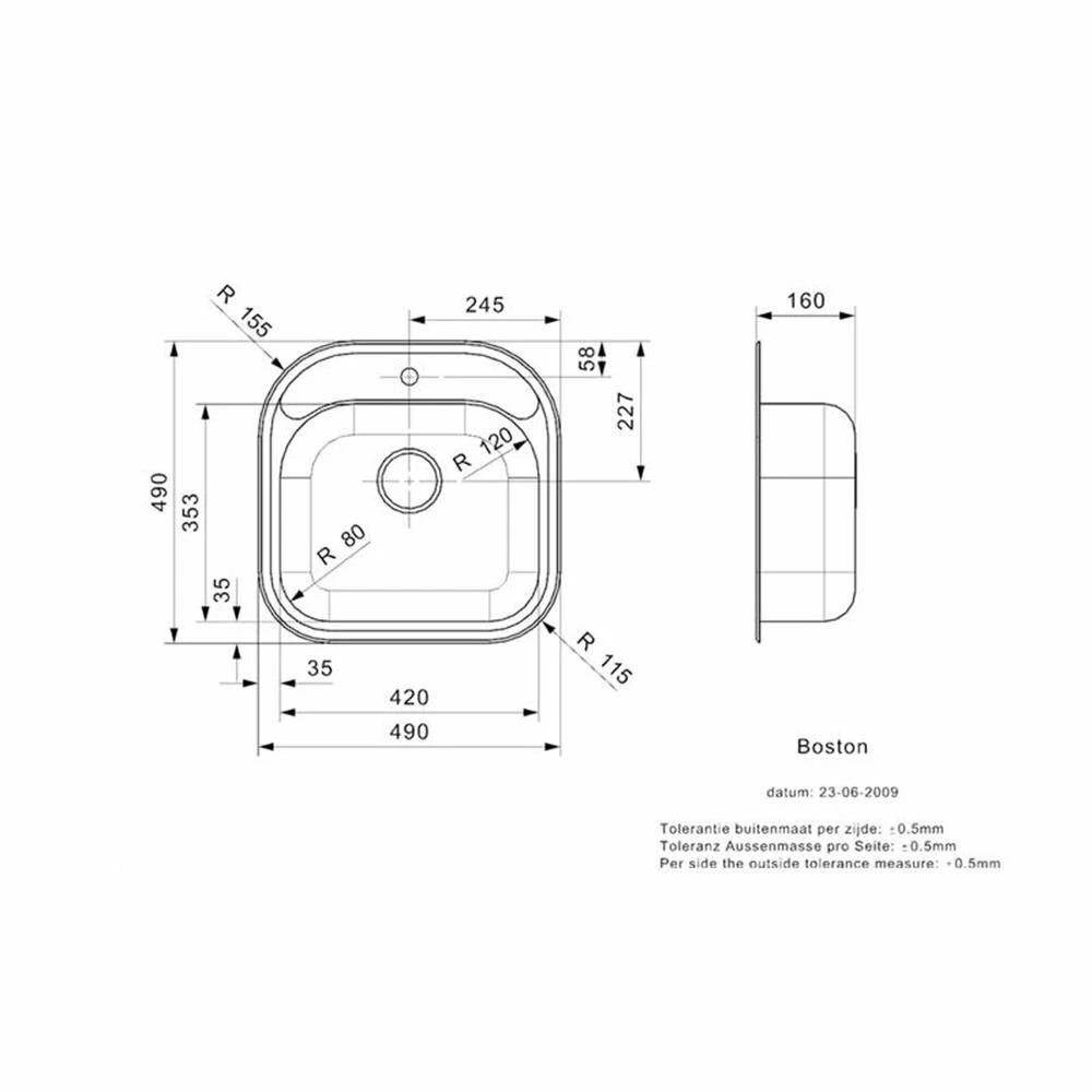 - Spülenmaß: B 490 x T 490 mm