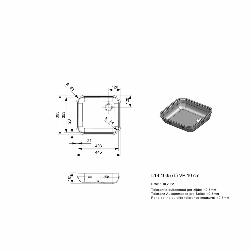 - Beckengröße: B 403 x T 353 x H 100 mm