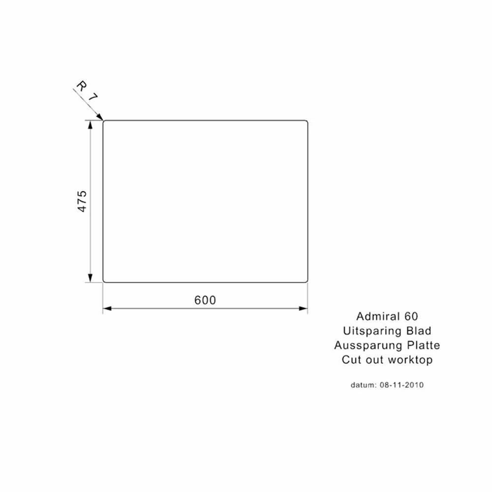 - Ausschnittmaße aufliegender Einbau: 600 x 475 mm R7