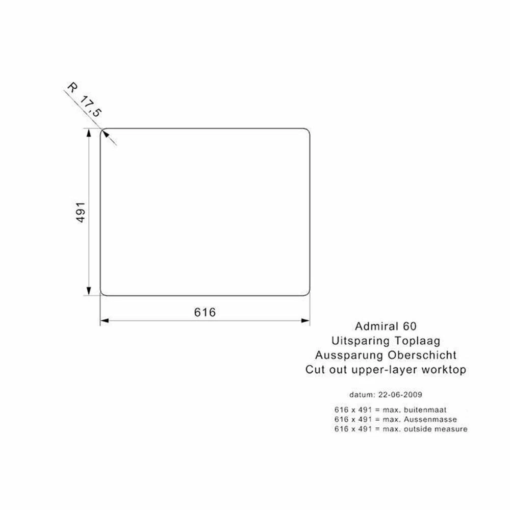 - Ausschnittmaße flächenbündiger Einbau: 616 x 491 mm R17,5