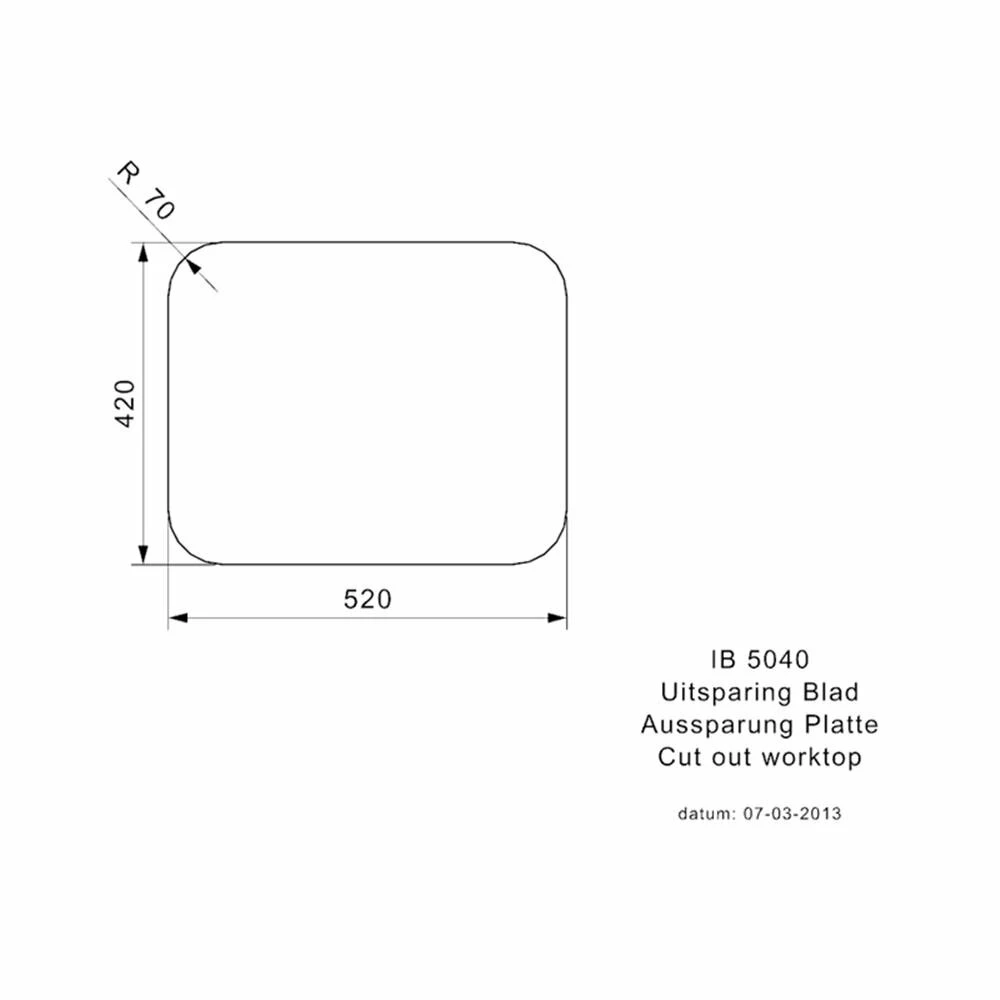 - Ausschnittmaße aufliegender Einbau: 520 x 420 mm