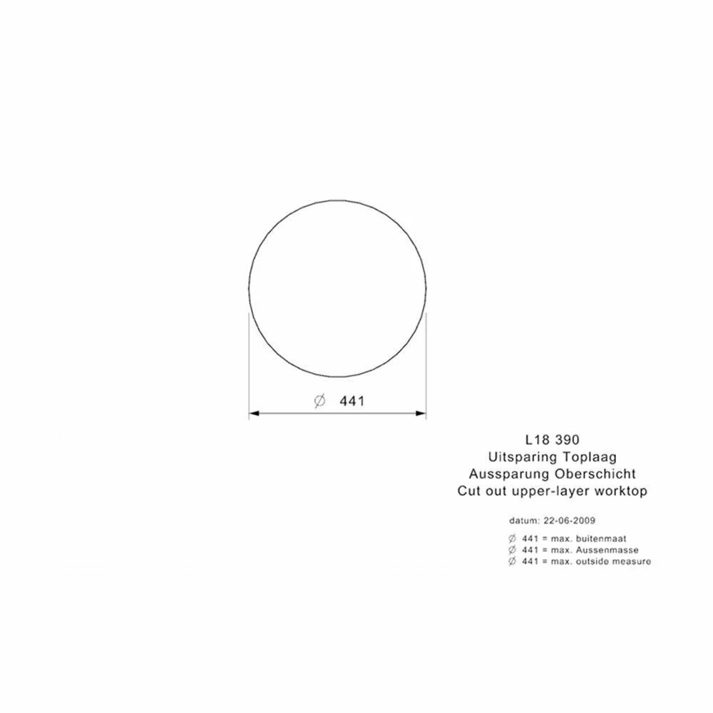 - Spülenmaß: B 440 x T 440 mm