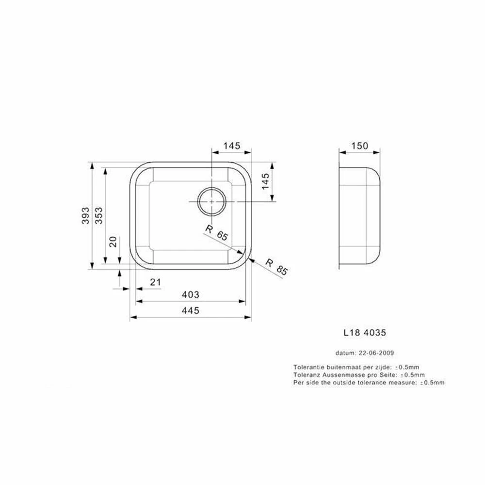 - Beckenabmessung: 403 x 353 x 150 mm