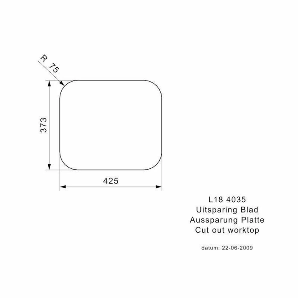 - Ausschnittmaße aufliegender Einbau: 425 x 373 mm R75