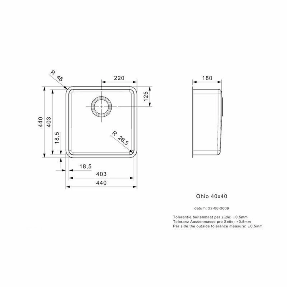 - Spülenmaß: B 440 x T 440 mm