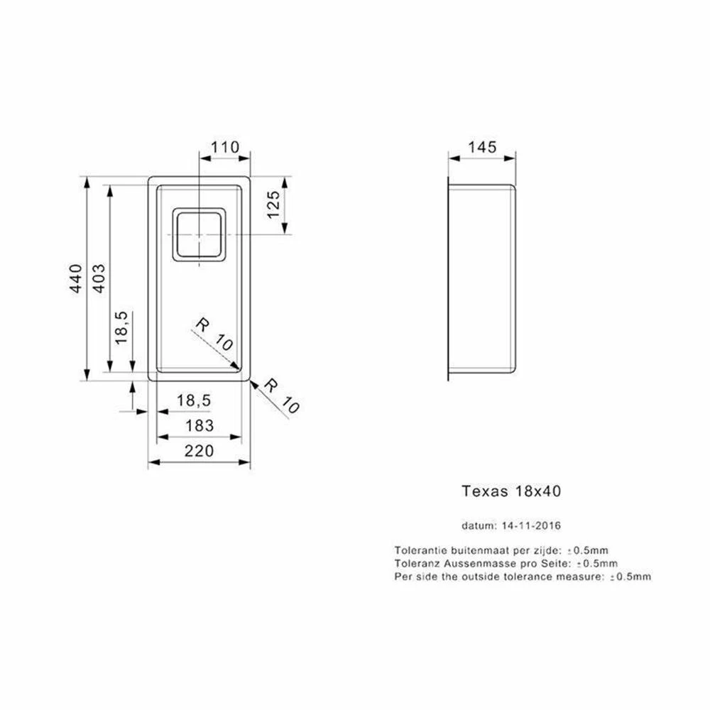 - Beckenabmessung: 183 x 403 x 145 mm